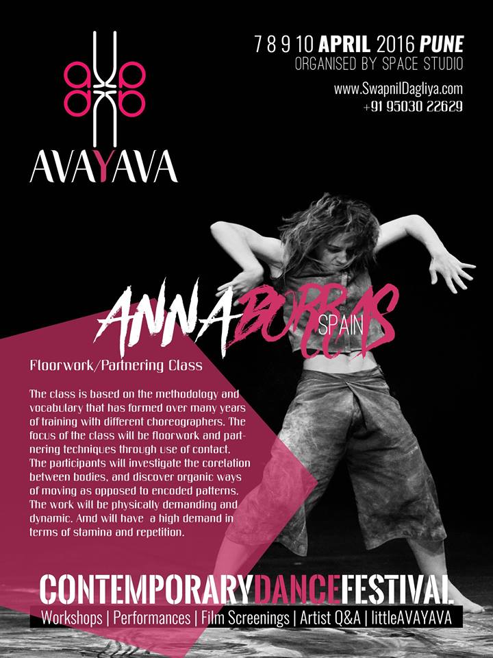 L’Avayava Contemporary Dance Festival, córrer a càrrec de Swapnil Dagliya, el qual tindrà lloc del 7-10 d’Abril així com les classes s’allargaran fins el dia 13 del mateix mes entre Pune i Mumbai.