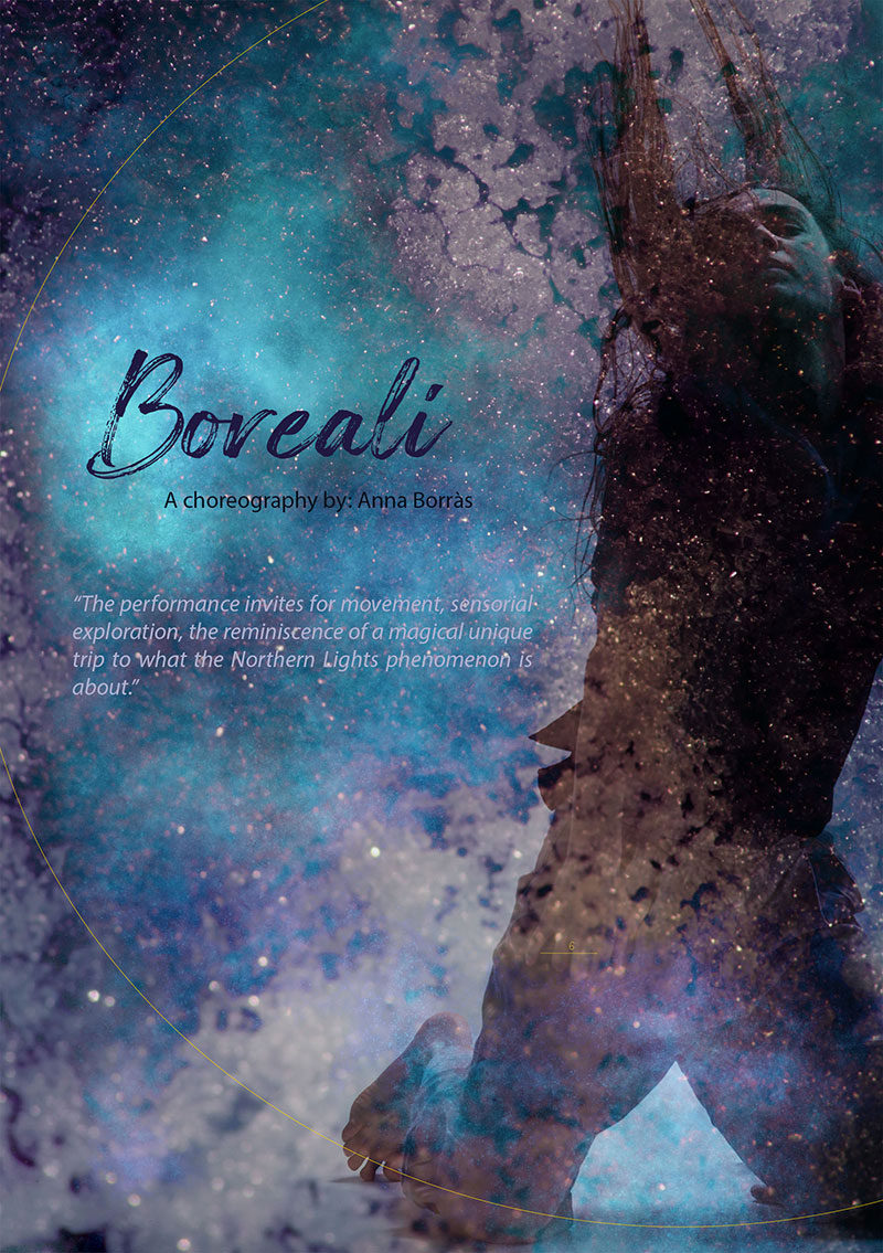 Boreali explica la història de com es creen les aurores boreals. Ofereix al públic una experiència immersiva on estarà envoltat de dansa, so, projeccions, llums i música en directe.